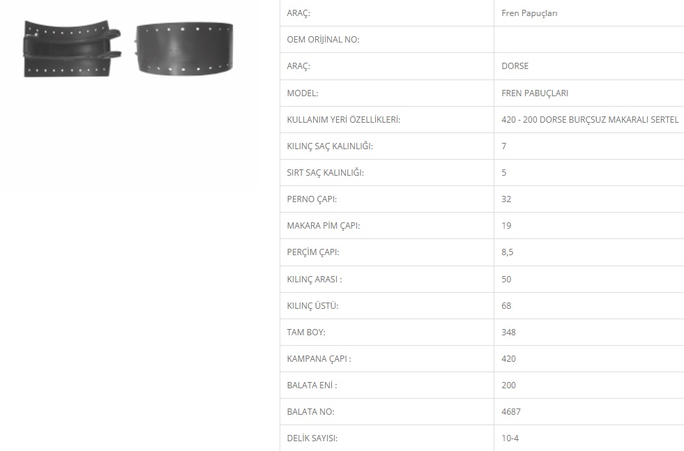 | ÜRÜN GRUBU | FREN PABUCU | |